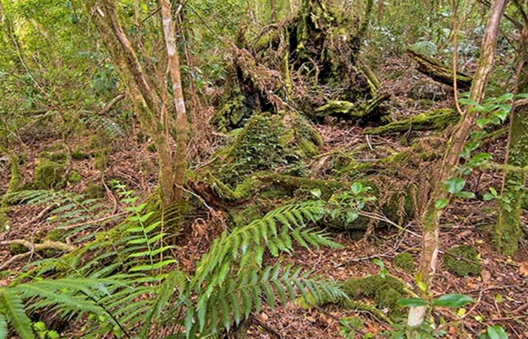 The rainforest gives way to tall wet forest at the escarpment edge near the lookout, which is dominated by flooded gum and blackbutt. Below in Collins Creek, subtropical rainforest flourishes, with the bright red blooms of flame trees visible amongst the canopy in summer.