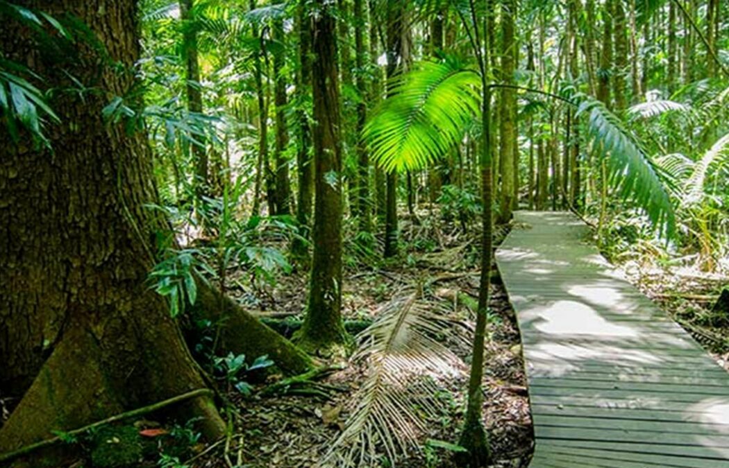 The lush rainforest provides a home for the newly discovered nightcap oak as well as a number of threatened animal species, including Albert’s lyrebird and Fleay’s barred frog which takes shelter under leaf litter and makes an ‘ok-ok-ok-ok-ok’ after rain.